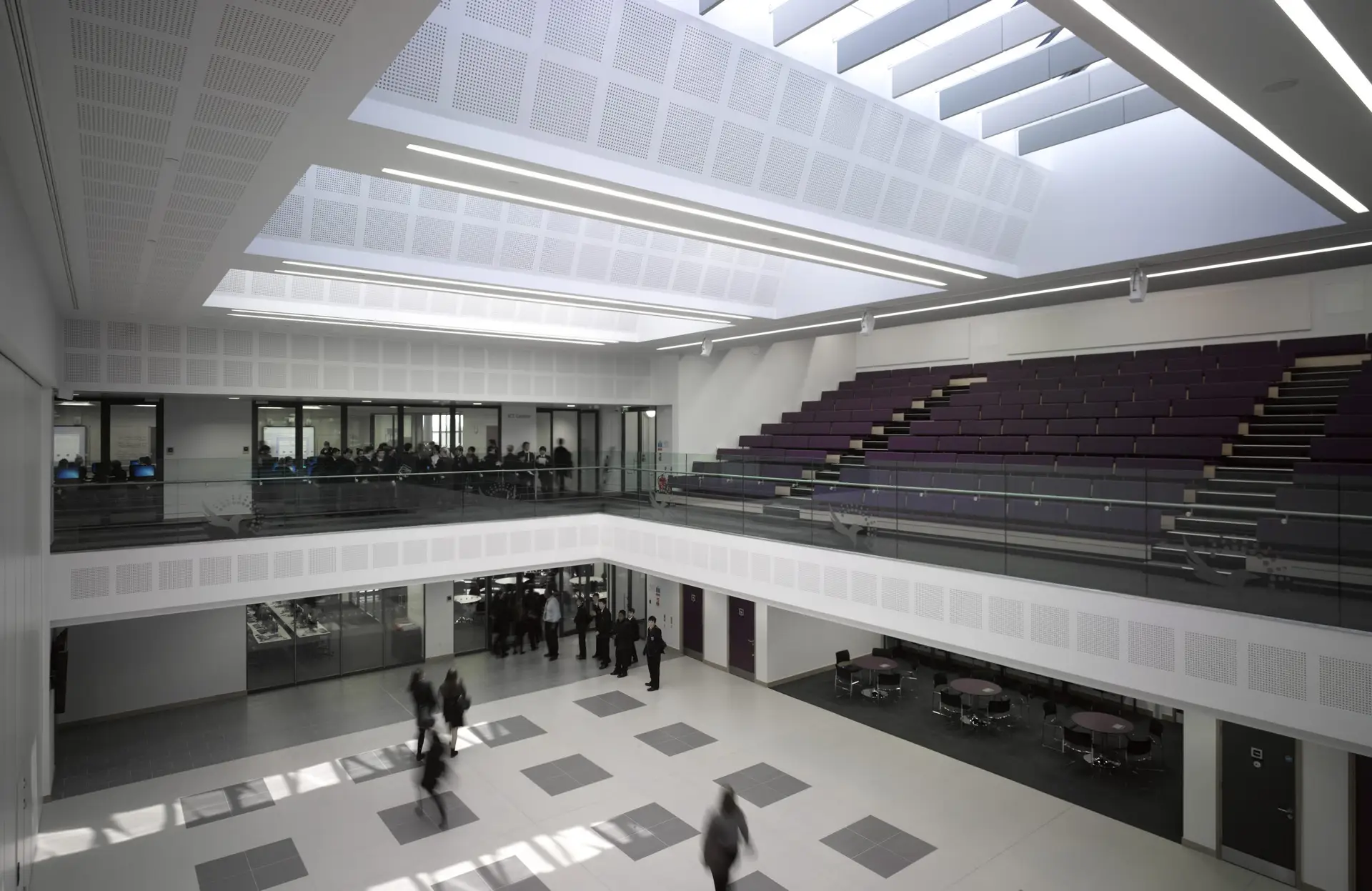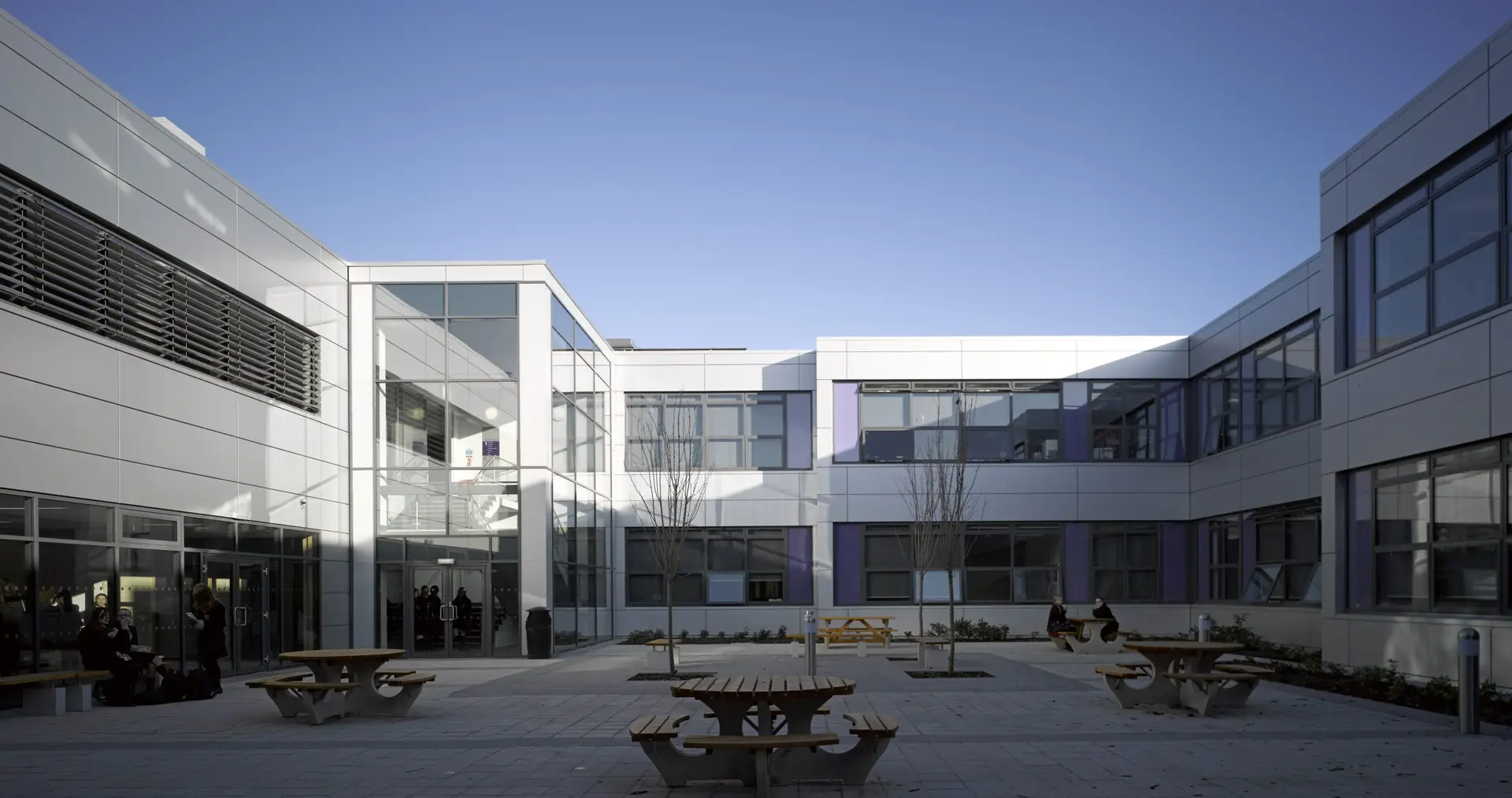 Visitors are drawn into the main reception, which is flanked by the sports complex and the academy’s administration centre and specialist subjects.